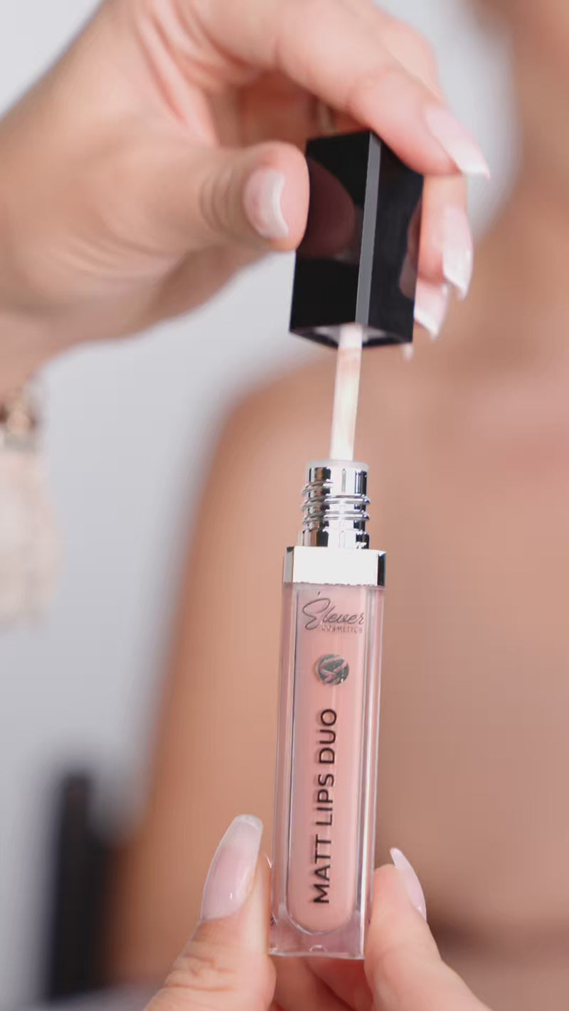 Dodaj swoim ustom niepowtarzalny urok z naszą matową pomadką, dostępną w dwóch klasycznych odcieniach: Nude i Rose. Ta lekka, ale niezwykle trwała formuła zapewnia intensywny kolor o matowym wykończeniu, który wygląda perfekcyjnie przez cały dzień.